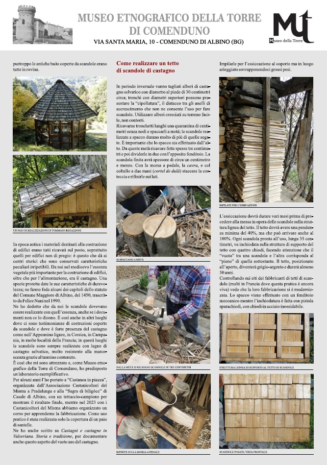 L’Associazione del Museo della Torre partecipa all’evento con la presenza a «Impronte Naturali», una tre giorni dedicata al legno al Parco Servalli di Albino in programma dal 18 al 20 luglio. Durante queste giornate, gli scultori realizzeranno quattro panchine artistiche e professionisti di diversi ambiti mostreranno alcuni degli attrezzi che hanno caratterizzato la cultura contadina, unendo l’arte del legno con altre discipline come il teatro, con i burattini, oppure la musica con l’intrattenimento affidato ai baghèter – i suonatori di baghèt, l’antica cornamusa bergamasca –, la dolce melodia dell’arpa e il concerto del gruppo Brass & Breakfast.
